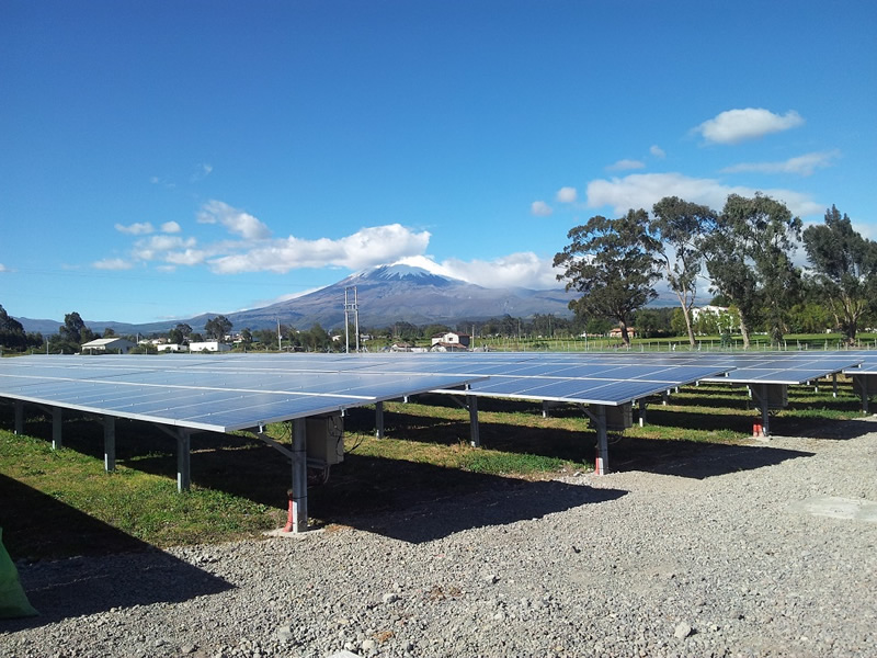 Construction of structures for the first photovoltaic system in Ecuador, which produces renewable energy in a plateau at 3000 m height above sea level